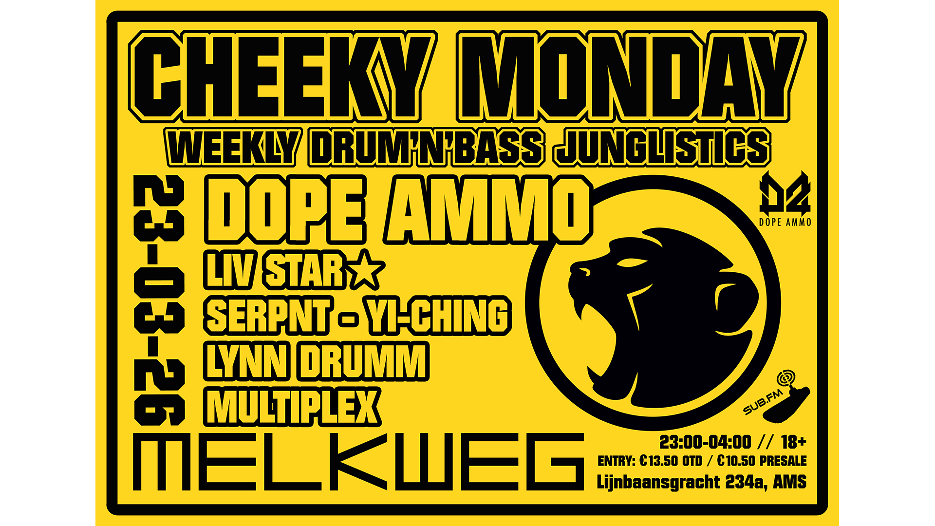 23:00-04:00 // ENTRY: €13.50 / €10.50 PRESALE (INCL SERVICE FEES)